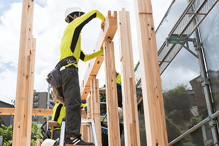 上棟工事は建物の骨組みを作る重要な工程です。主な作業内容は、建物の基礎の上に柱や梁、屋根の骨組みを組み立てることです。